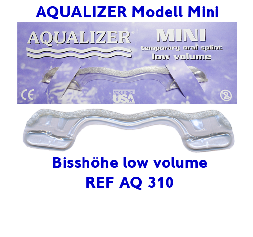 Der Aqualizer Mini Low bewirkt eine geringere Distraktion im Kiefergelenk, was für Patienten von Vorteil ist, die empfindlich gegenüber Fremdkörpern im Mund reagieren oder eine eingeschränkte Mundöffnung haben. Aqualizer mit einer niedrigen Bisshöhe von ca. 0,75 mm können aufgrund der sehr leichten Rotation im Kondylus auch optimal zur Vorbereitung einer Bissnahme für eine individuelle Beißschiene genutzt werden.